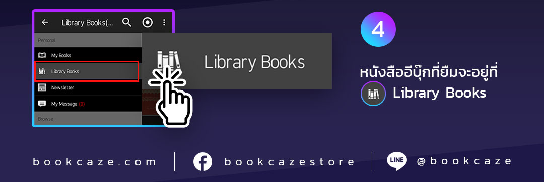 1.3 เมื่อเข้าระบบสำเร็จแล้ว หนังสืออีบุ๊กที่ทำการยืมจะอยู่ในเมนู My Library Books